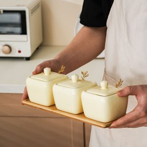 - Enhancing the Kitchen Ambiance: This square ceramic seasoning jar set can significantly enhance the ambiance of the kitchen or dining room. Its stylish design and ceramic material create a sense of elegance and functionality. It can be placed in different areas. such as on a kitchen shelf or a dining table. to add a touch of sophistication and practicality. The set’s ability to store seasonings makes it a valuable addition to your kitchen decor collection.