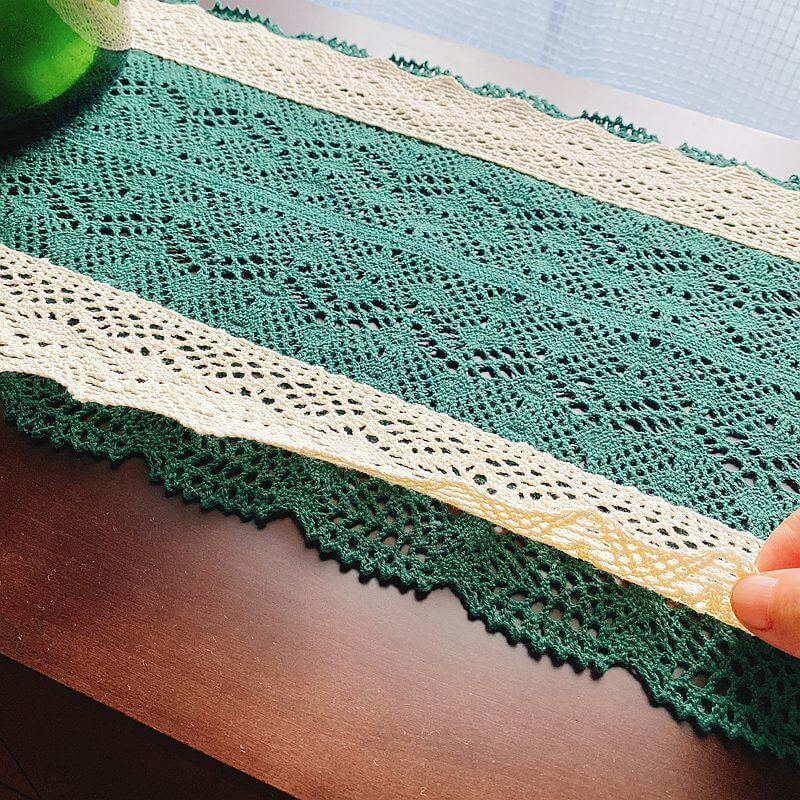 This Macrame Hollow Cotton Thread Table Runner adds elegance and versatility to any dining table with its intricate design and vintage beige/forest green color scheme. Its high-quality cotton thread material provides a soft texture. perfect for those who appreciate vintage and bohemian styles. A must-have for any table setting.
