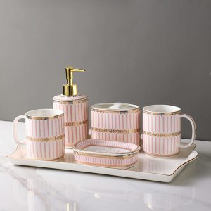 Lighteme Stripe Gilt Ceramic Bathroom Set