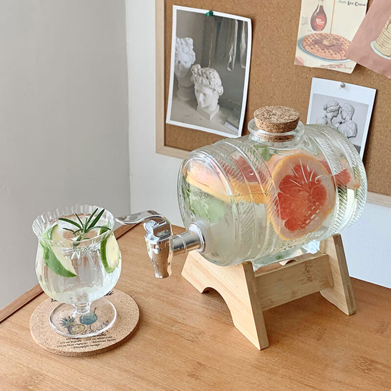 Versatile Glass Barrel Dispenser: Ideal for serving lemonade. iced tea. infused water. or cocktails – a striking centerpiece for self-serve convenience.