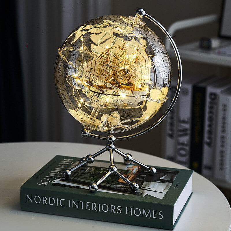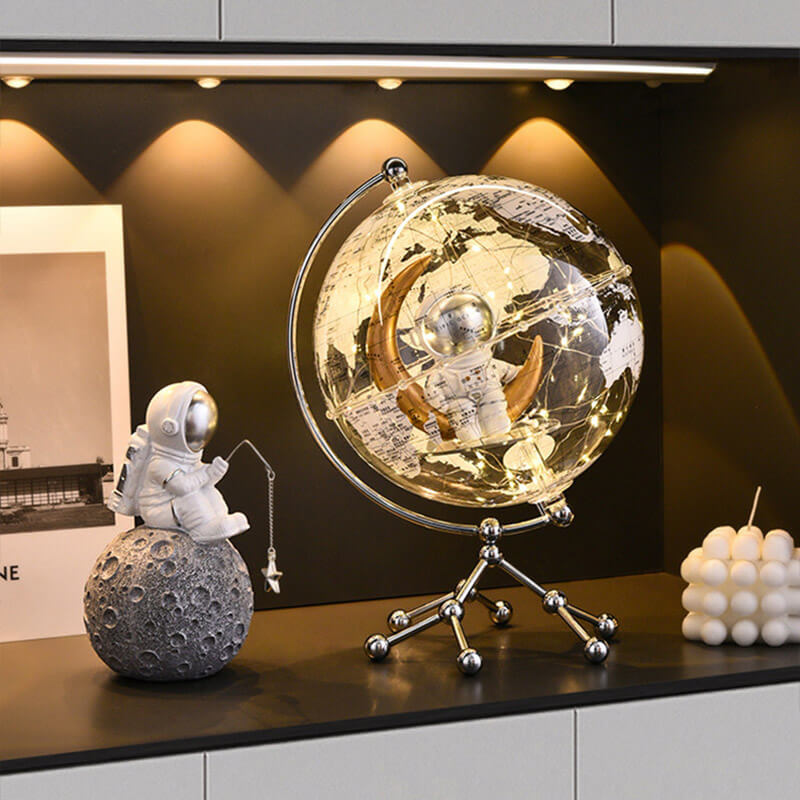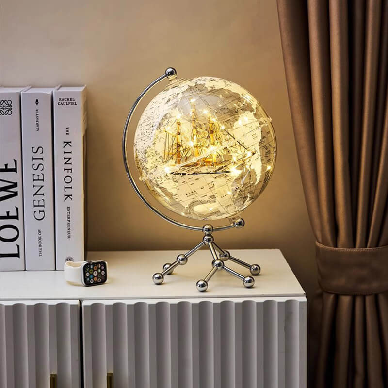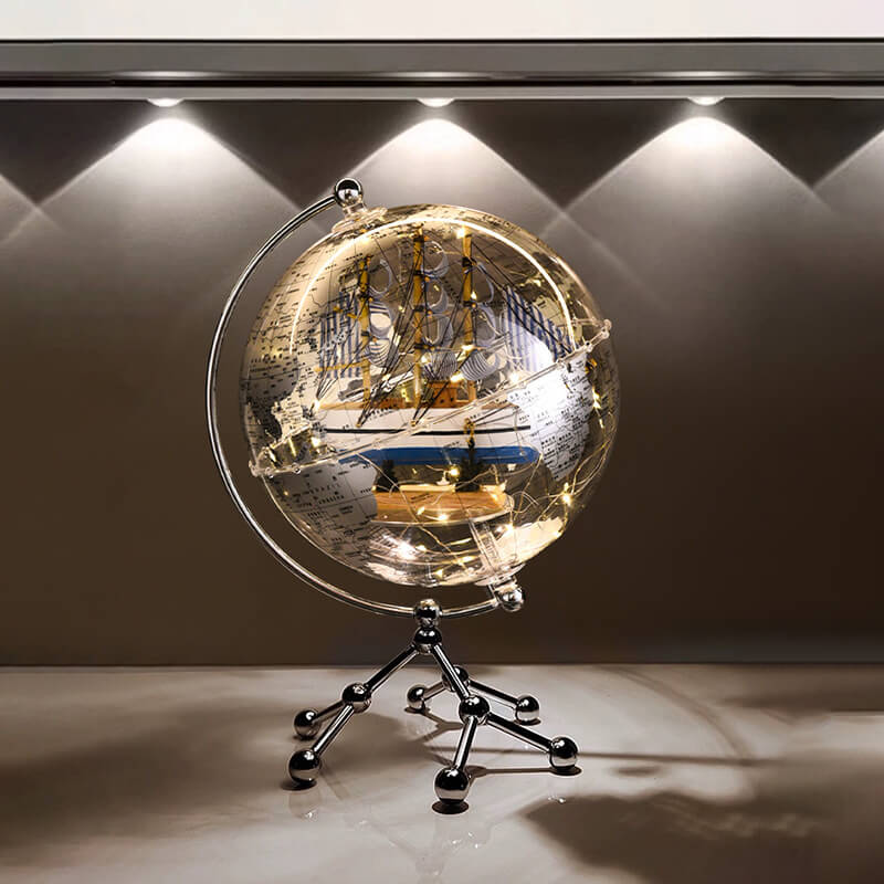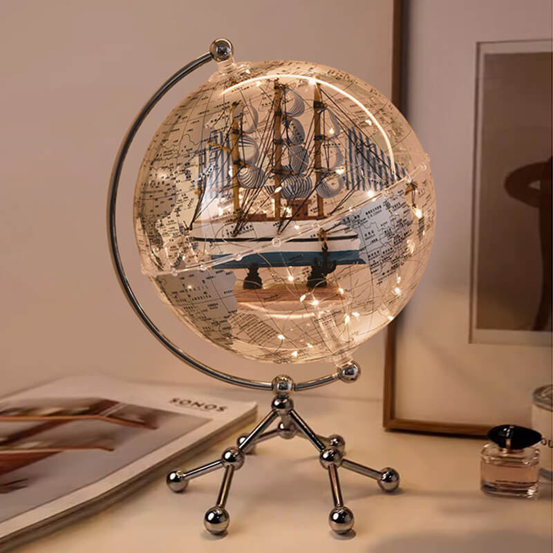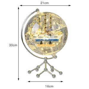 Add a touch of sophistication and charm to your home or office with the Lighteme Transparent Globe Decoration. Combining sleek metal frames with clear acrylic globes. these ornaments feature intricate motifs like sailing ships. astronauts. and dinosaurs. blending functionality with artistic design. Perfect for desks. wine cabinets. or TV stands. they double as night lights. casting a warm glow that enhances any space.