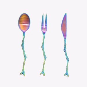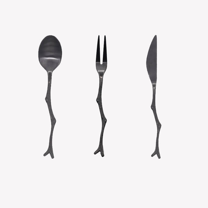 - Rustic Aesthetics: The handles mimic the texture of tree branches. with embossed details such as bark patterns and subtle curves. creating a natural. organic look. This design adds a warm. inviting touch to table settings. blending seamlessly with rustic. farmhouse. or bohemian decor.