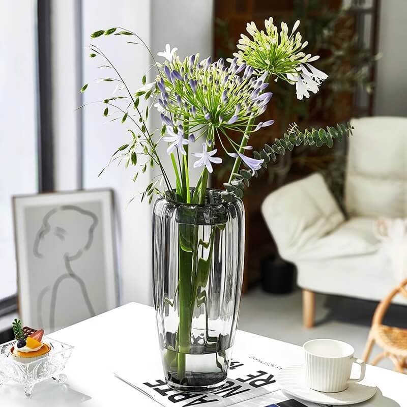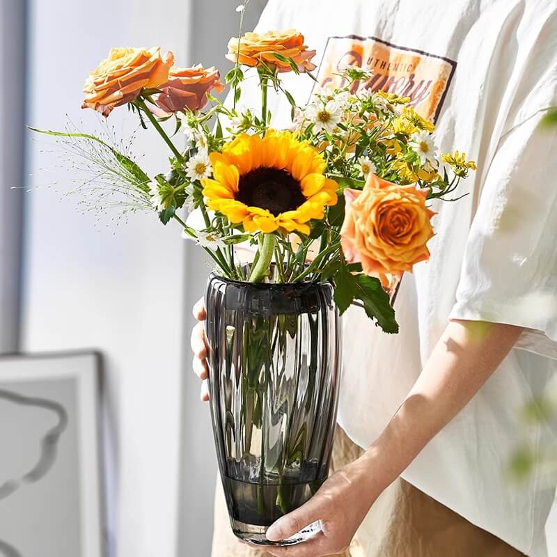 - Durability and Clarity: The use of high-quality glass in the construction of this vase ensures its durability. Glass is a sturdy material that can withstand regular use and handling. It offers excellent clarity. allowing the gray or transparent color of the vase to shine through. The glass material gives the vase a clean and elegant look. making it a great choice for showcasing flowers or as a standalone decorative item. It’s also relatively easy to clean. ensuring that the vase maintains its beauty over time.