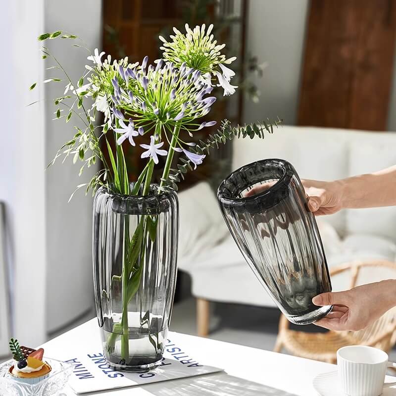 - Flower Arrangement: This vertical grain glass vase is perfect for creating beautiful flower arrangements. Its design and glass material make it a great backdrop for showcasing the colors and shapes of the flowers. The vertical grains can enhance the visual appeal of the flowers. making them stand out. It can be used to add a touch of nature and beauty to the home. creating a more inviting and lively atmosphere.