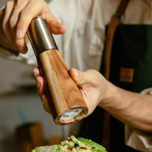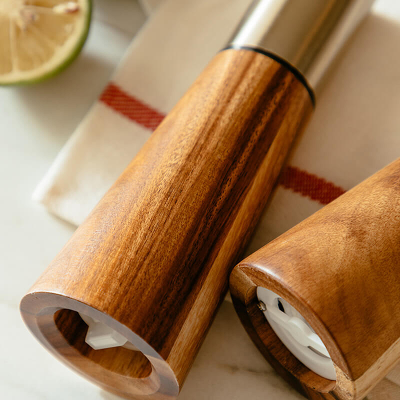 - Durability and Elegance: The use of high-quality wood in the construction of this pepper grinder ensures its durability. Wood is a sturdy material that can withstand regular use and handling. It also adds an element of elegance to the kitchen. The smooth and polished texture of the wood gives the pepper grinder a refined look that can complement various kitchen decor styles. from modern to traditional.