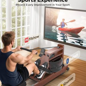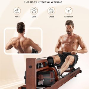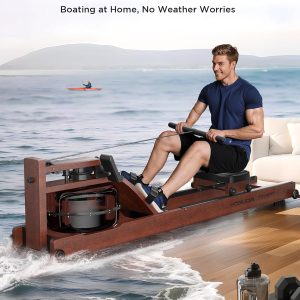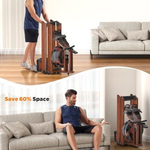 Lighteme Water Rowing Machine for Home Gym – Foldable Wooden Rower with Water Resistance & LCD Monitor