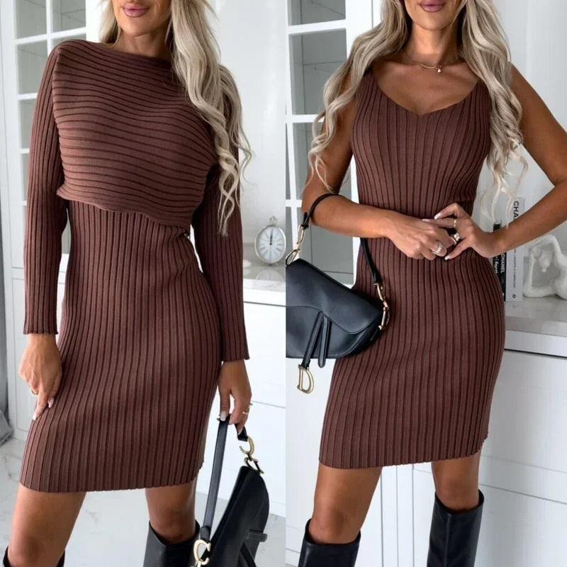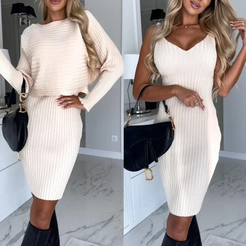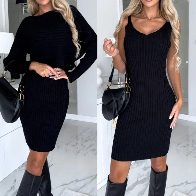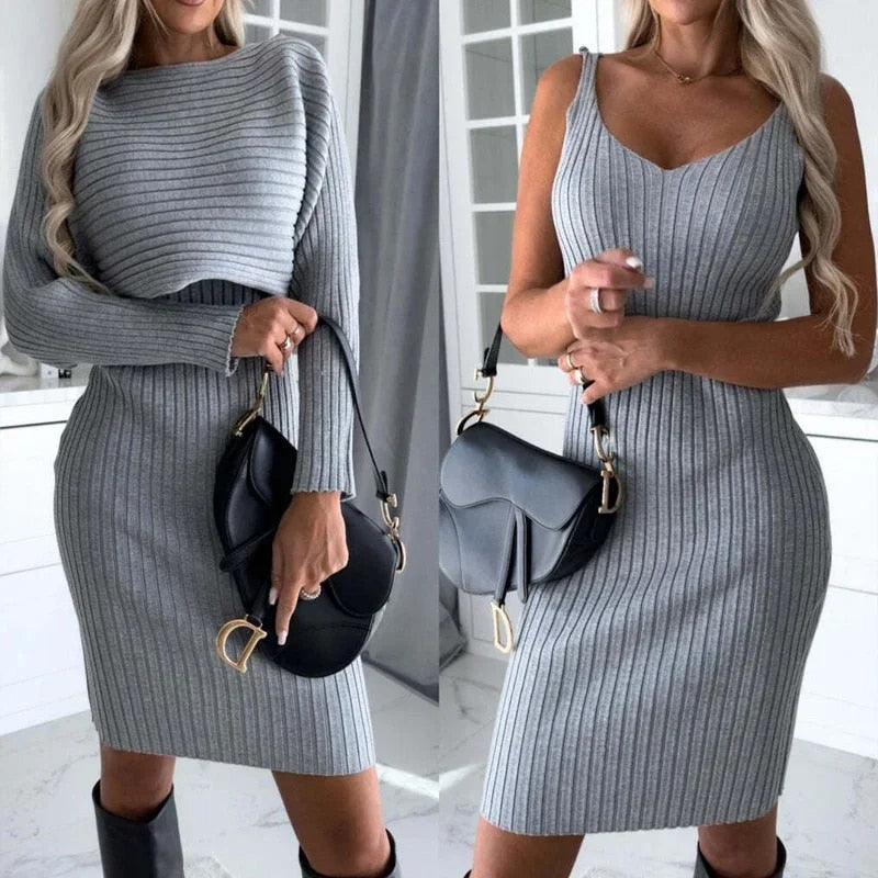 Lighteme Women’s Dress with Long Sleeve Crop Top Set