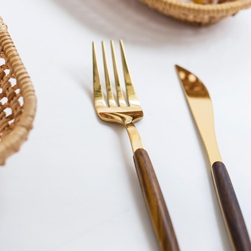 - Warm Aesthetic: The natural wood handles add a touch of organic beauty. with unique grain patterns that complement any table setting. from rustic to contemporary. The wood is carefully polished for a smooth. splinter-free finish.