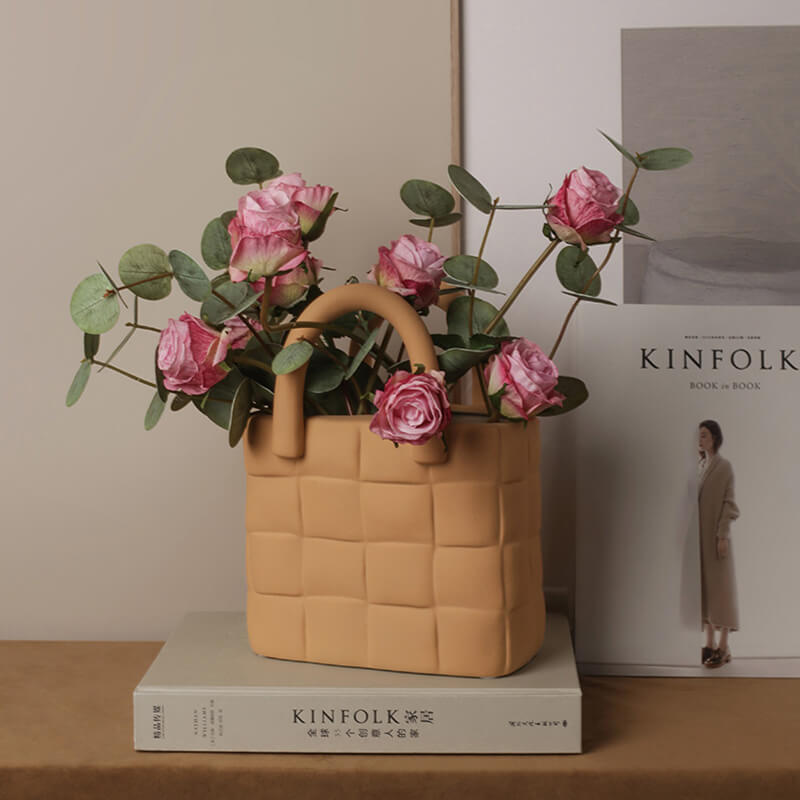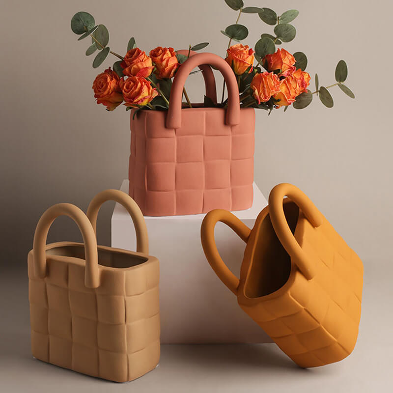 - Aesthetic Appeal: The woven bag design of this ceramic vase is its most distinctive feature. It brings a unique and charming look to the room. The imitation of a woven bag gives it a rustic and artisanal feel. making it stand out among traditional vases. Whether placed on a table. shelf. or mantel. the woven bag design draws the eye and adds a touch of elegance to the space. It can complement various decor styles. from bohemian to modern farmhouse.
