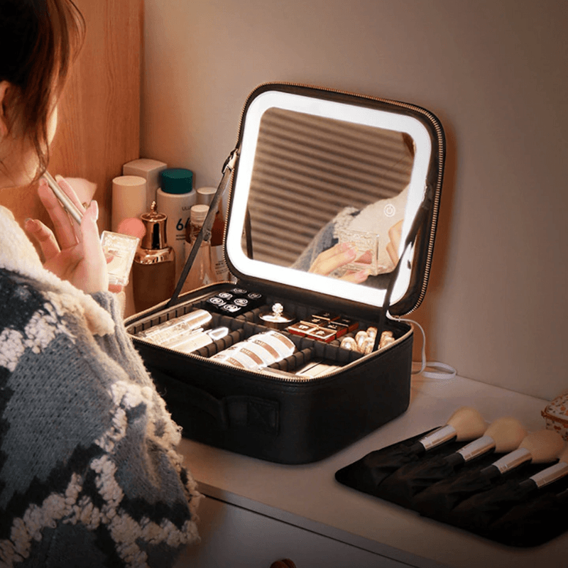 Lighteme is made from luxurious materials and features adjustable compartments to store all your beauty and grooming essentials with ease. Enhance your beauty routine. eliminate clutter and enjoy effortless glamor on the go.