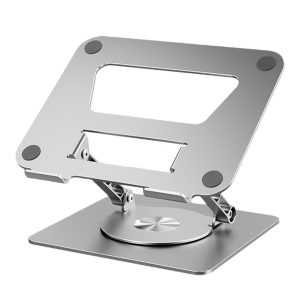 The ultimate solution for a comfortable and efficient work setup. This stand features a 360° rotatable axis that connects to the base. allowing you to swivel your laptop to any angle. It elevates your laptop to your eye level. fixing your posture and reducing neck and back stiffness.