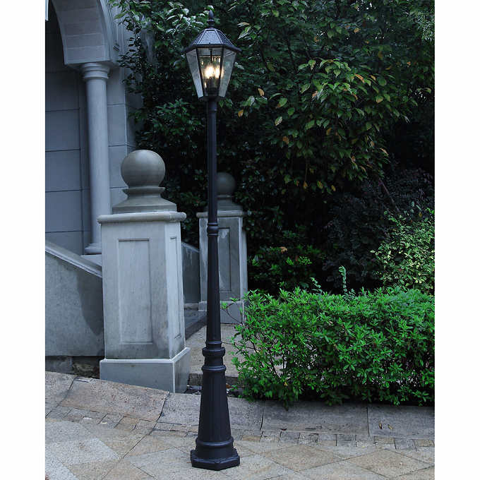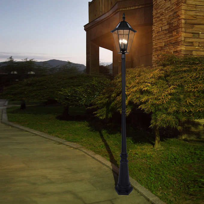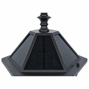 This post lantern merges Victorian-inspired craftsmanship with modern solar technology. offering: