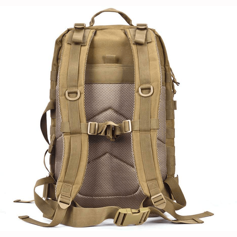 - Assault pack backpack with double-stitched. Heavy duty zippers and utility-style cord pull. Side and front load compression system. Ventilated mesh padded back area & shoulder strap. breathable and comfortable.