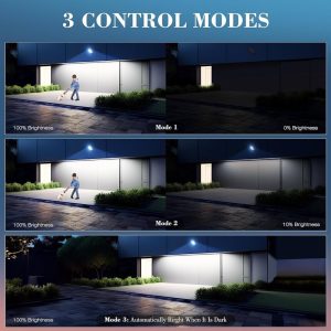 - Motion-Activated Full Power: 100% brightness when movement is detected within range.