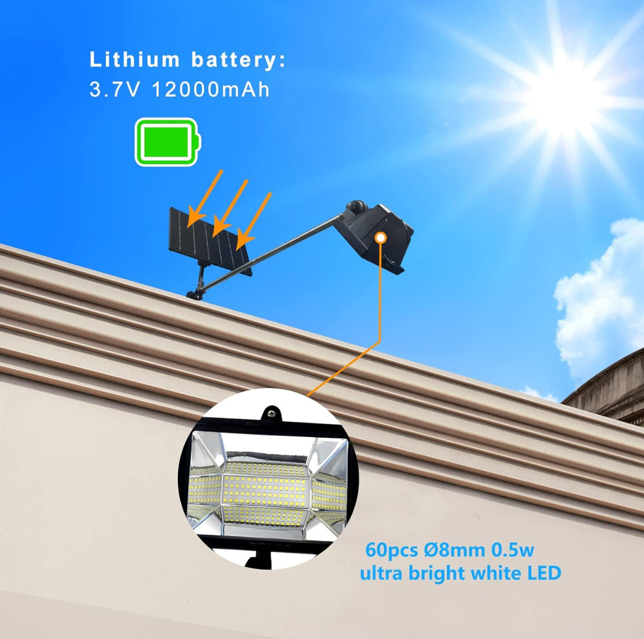 Lighteme Solar Billboard Light Metal Aluminum Lamp Heads.400W 12000AMH Li-on Battery. 60 LED Super Bright Light. Commercial Billboard Lamp Suitable for a Variety of Scenes
