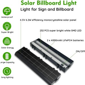 Lighteme Solar Billboard Sign Lights Outdoor. 232 led Super Bright Sign light. Adjustable Bracket & Wall Mount 2-in-1 Commercial Billboart Lighting for Bussiness. Real Estate. Shop. Bus Stop. HOA. Highway Signs