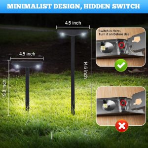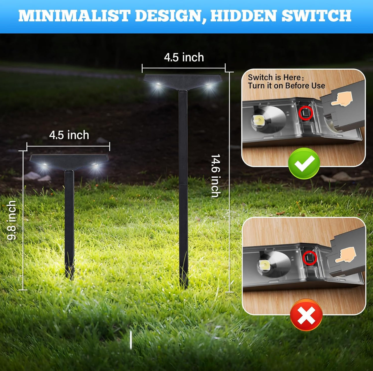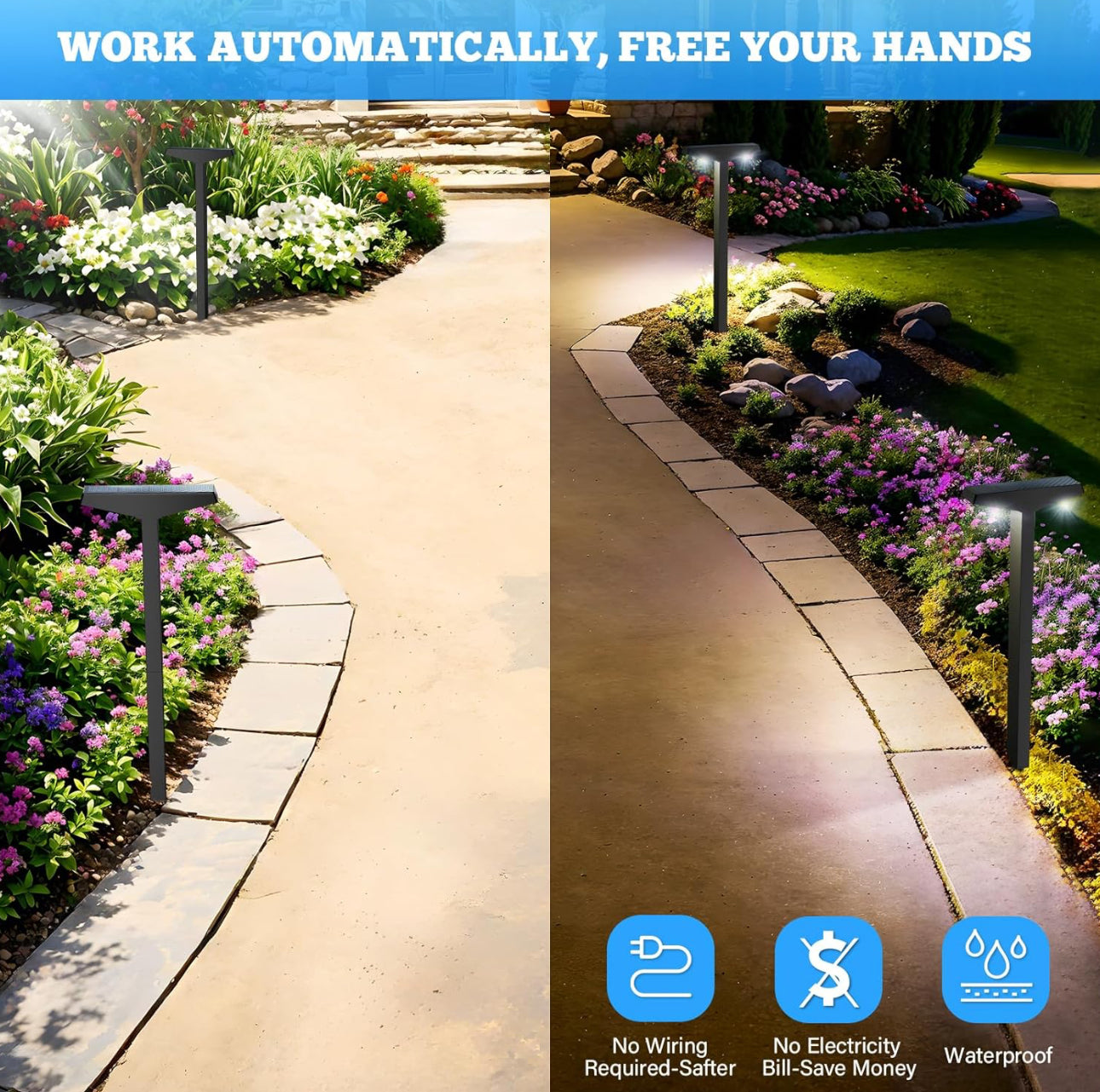 - Automatic Switch Function – Ideal for placement on walkways. driveways. paths. front yards. gardens. and backyards. these outdoor solar-powered lights are top-notch waterproof pathway lighting solutions. The Lighteme solar lights efficiently brighten the vicinity and set a warm ambiance.