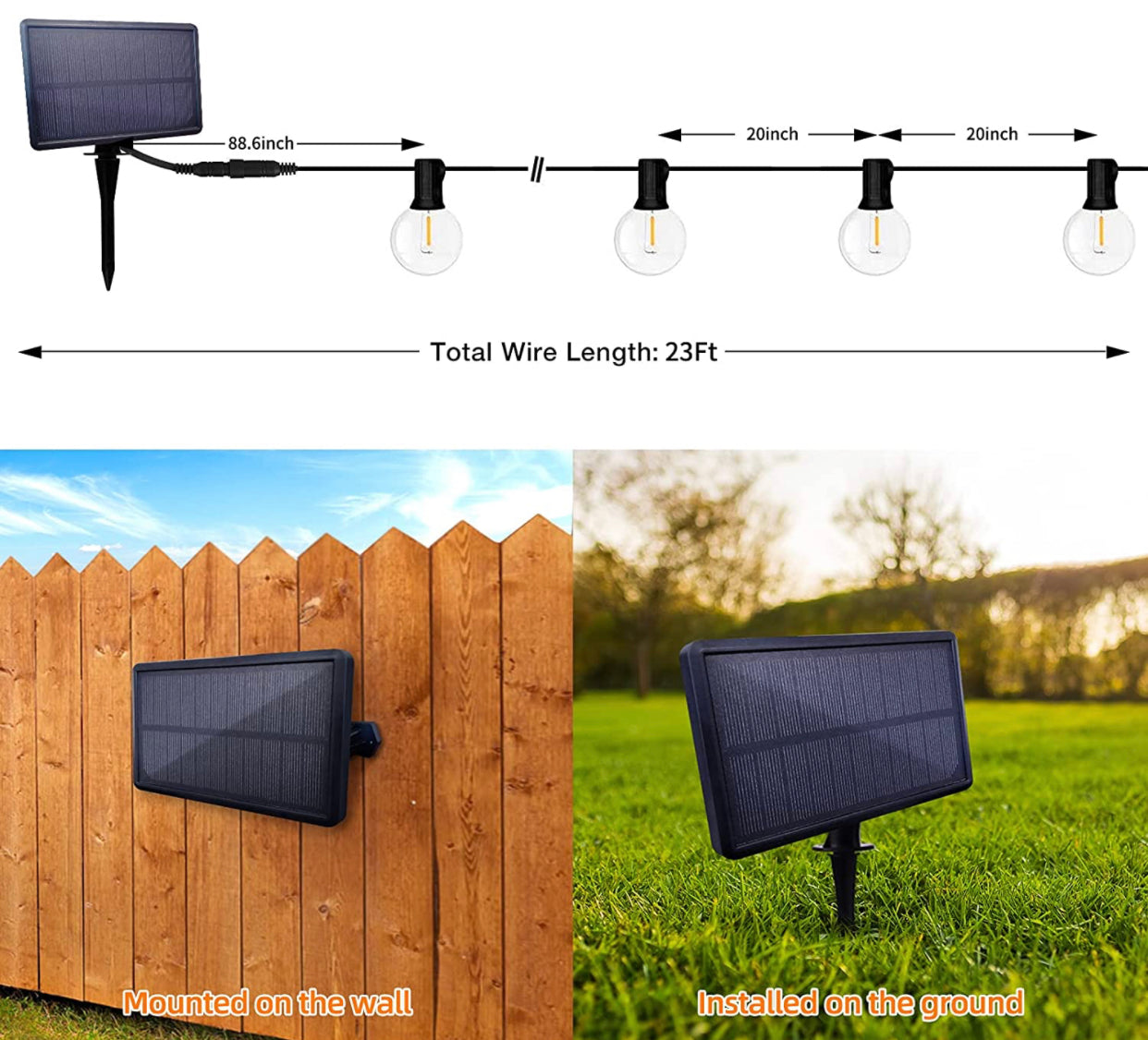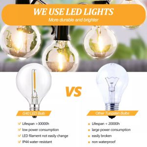 - Illumination Span: 23ft total (10 G40 bulbs @ 19.7 spacing)