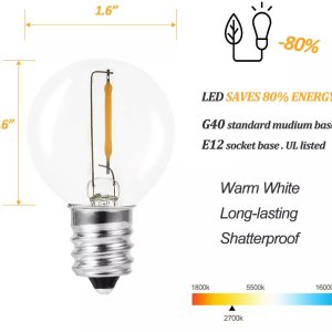 - Bulb Type: Shatterproof polycarbonate G40 globes