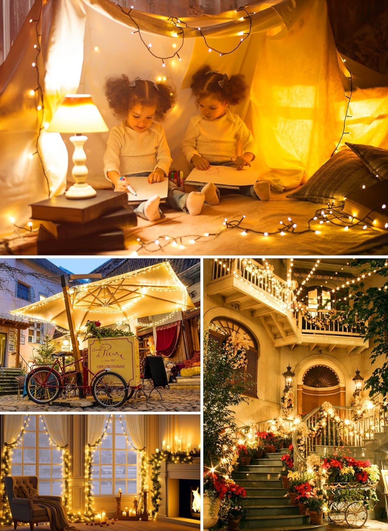 Enhance indoor or outdoor spaces with these versatile solar string lights. featuring 100 energy-efficient LEDs and adaptive lighting modes. Designed for durability and ease of use. they blend ambiance with practicality for gardens. events. or year-round décor.