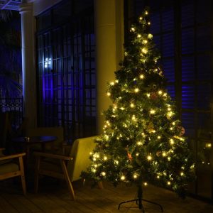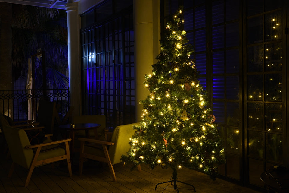 - LEDs: 100 warm white bulbs (non-replaceable. 33ft total length).