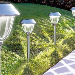 Lighteme. renowned for quality batteries. brings that excellence to this 10-pack of stainless steel LED solar lights. The durable stainless steel frames and glass lenses are built to endure outdoor elements effortlessly.