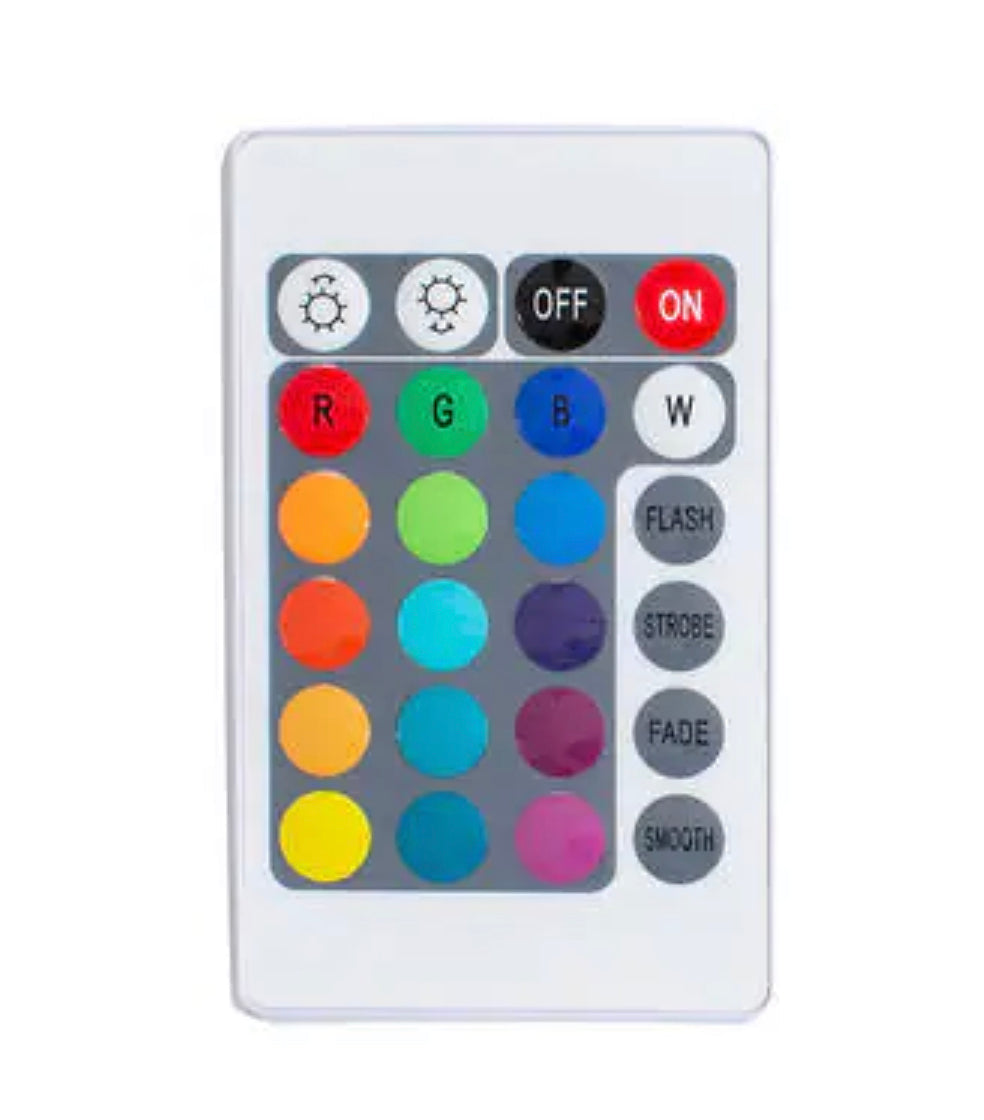 - Wireless remote selects hues: warm white + 14 vibrant shades
