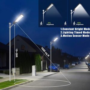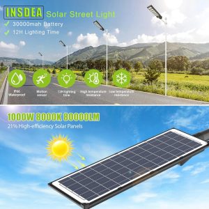 The 1000W Solar Street Light combines industrial-grade brightness. smart technology. and weatherproof durability to meet all your outdoor lighting needs. Say goodbye to high energy bills and complex installations—trust in its reliable performance to light up your world sustainably. night after night.