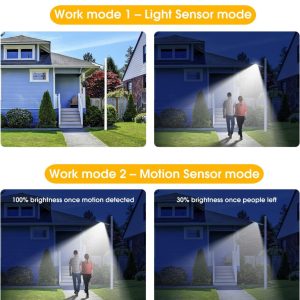 - Light Modes: Light sensor. motion sensor. daytime manual
