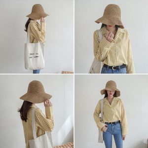 The Lighteme Foldable Straw Hat boasts a flat dome top and large eaves. providing ample shade and a trendy look.