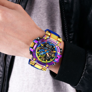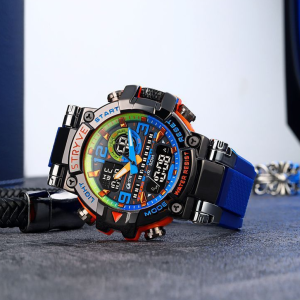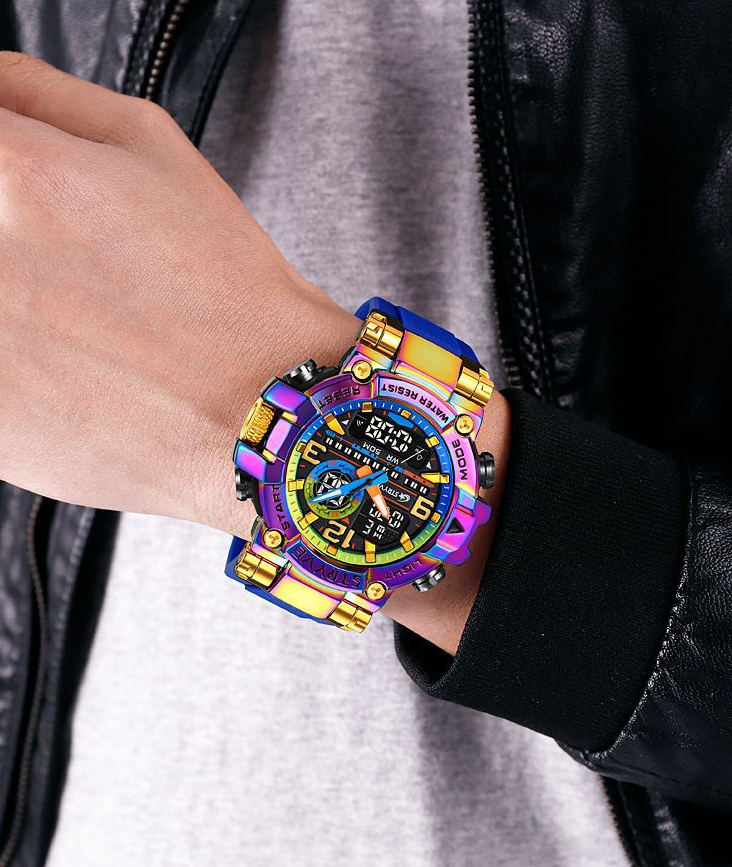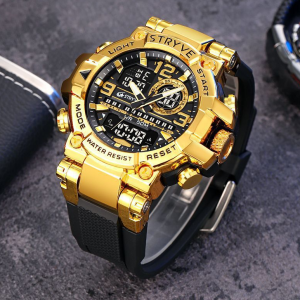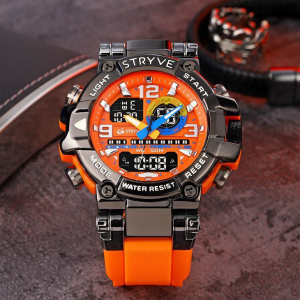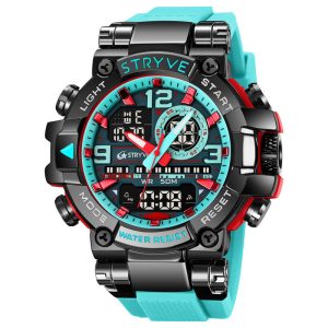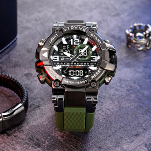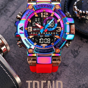 STRYVE Colorful Functional Waterproof Tactical Watch is engineered to be the ultimate fusion of rugged durability and precise timekeeping. This S8025 model integrates a hybrid quartz-digital movement within a robust yet lightweight frame. weighing only 111g for all-day comfort. It offers advanced features including moon phase tracking. tide graph. multi-time zone display. and a 1/100-second stopwatch. alongside practical daily tools like multiple alarms. a calendar. and a versatile 12/24-hour format. Built to withstand demanding conditions. it provides 50m water resistance and shock protection. making it an ideal companion for serious adventurers.