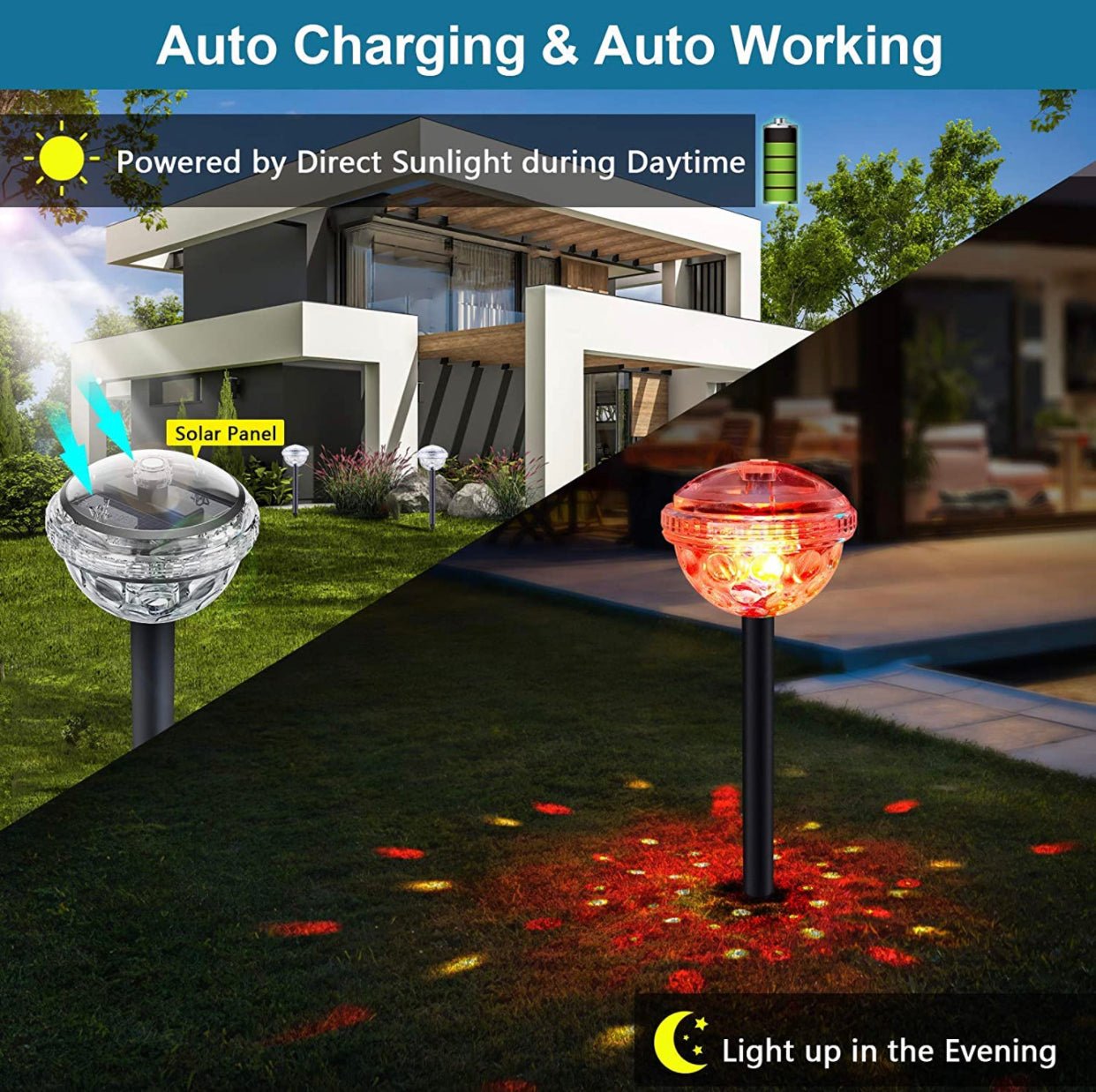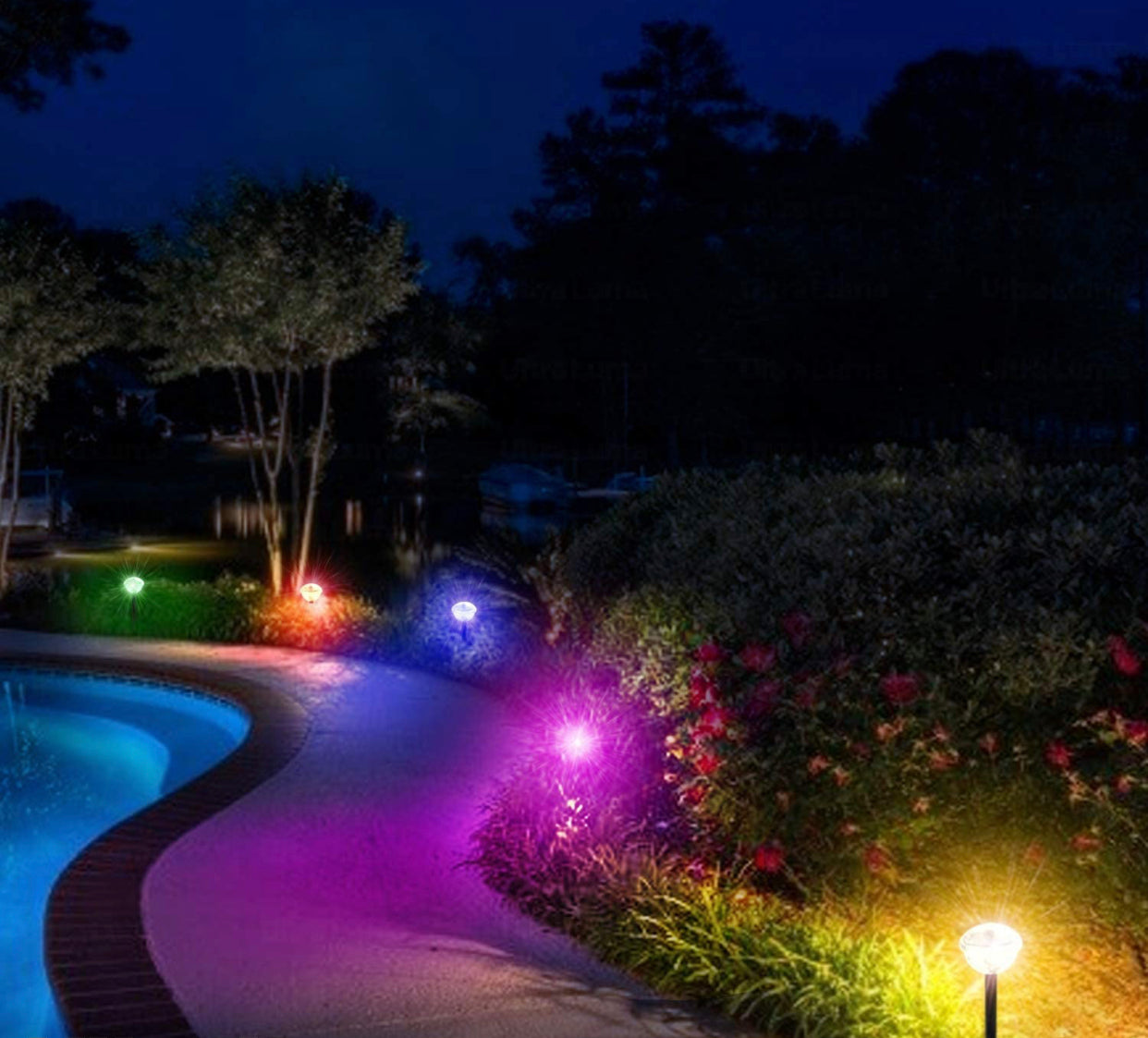- Garden & Landscape: Stake into the ground to highlight pathways. flower beds. and shrubs with colorful or white light.
