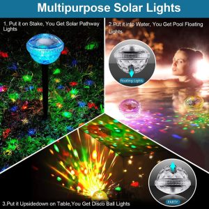 - All-Weather Durability: Constructed from high-end ABS plastic with an IP65 waterproof rating. these lights resist rain. snow. frost. and sleet. suitable for both ground placement and floating in pools or fountains.