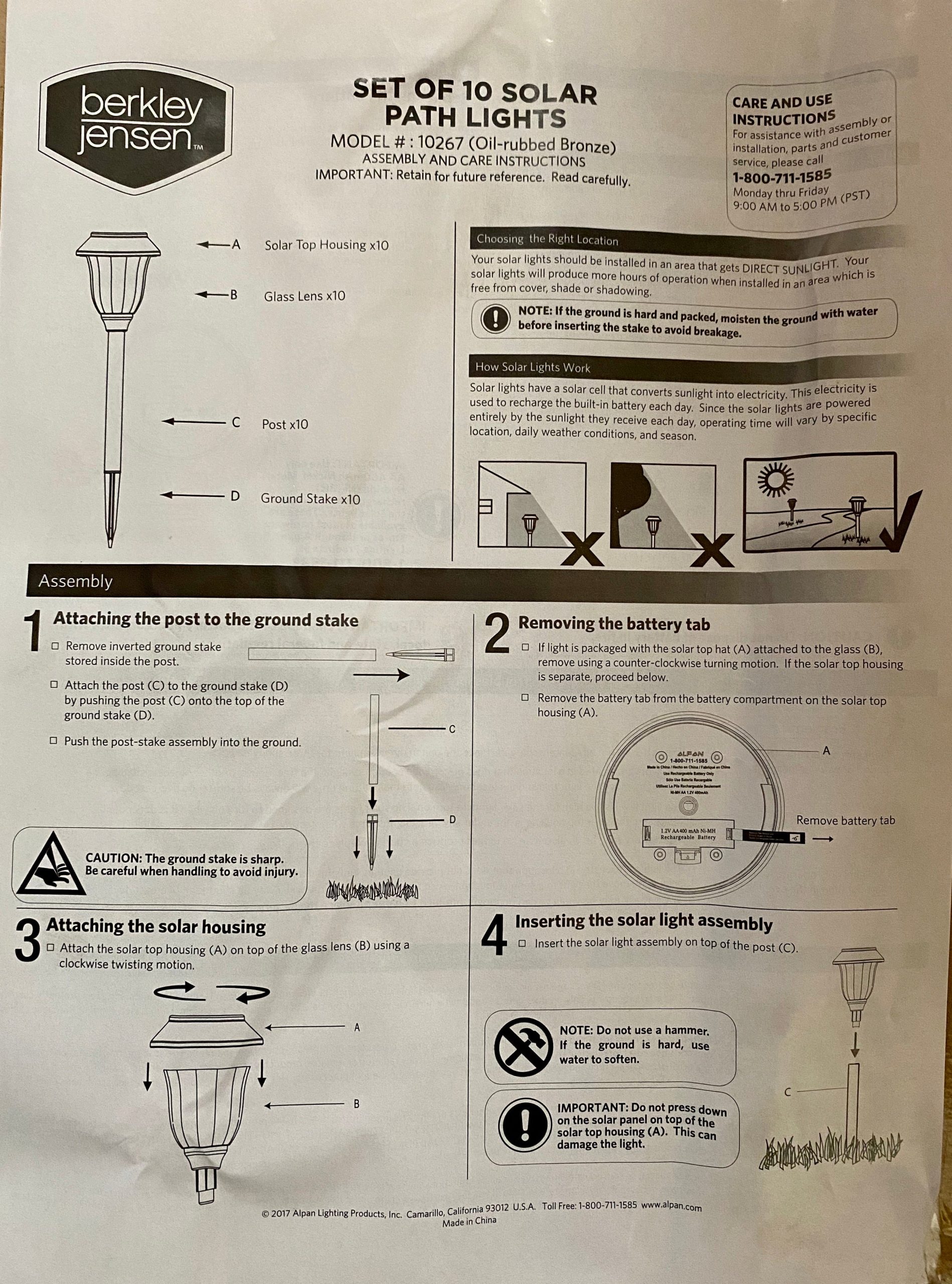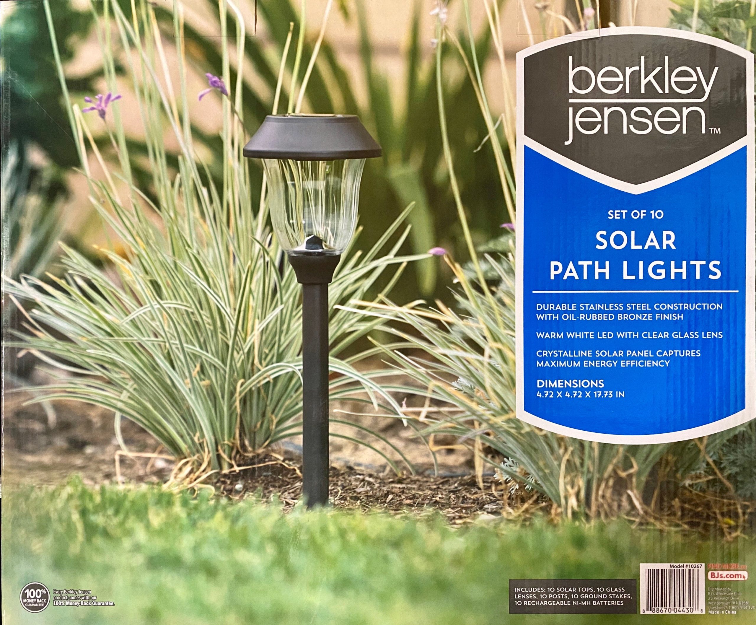 - Tool-Free Installation: Includes 10 solar top hats. 10 glass lenses. 10 support posts. 10 ground stakes. and 10 Ni-MH batteries (pre-installed). Simply assemble and stake into sunlit areas for instant use.